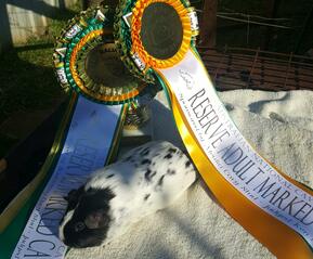 Breeding and exhibiting Dutch, Roan, Lilac Self and Crested, Black Self and Crested, American Golden Crested, Alpacas, Peruvians, Shelties & Texels, plus more.