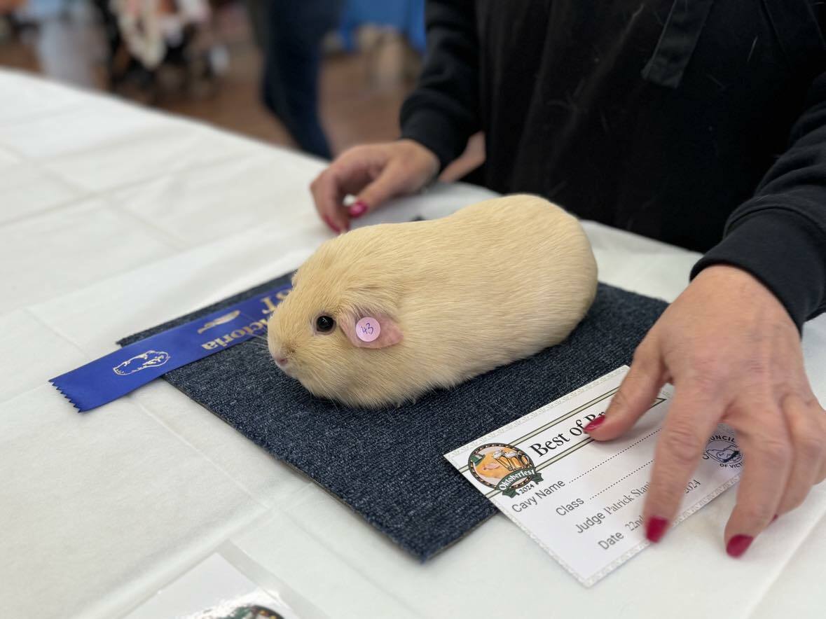 Cavy breeds in Victoria are divided into six categories: Marked, Self, Crested, Ticked, Coarsecoat and Longhair. These categories help define the certain characteristics of all of our wonderful breeds. Some breeds of cavy can be bred together and still have pedigree offspring such as a Pink Eyed White Self crossed with a Crested Pink Eyed White. The offspring will be 50% Crested and 50% Self and can be shown in their respective breed classes.