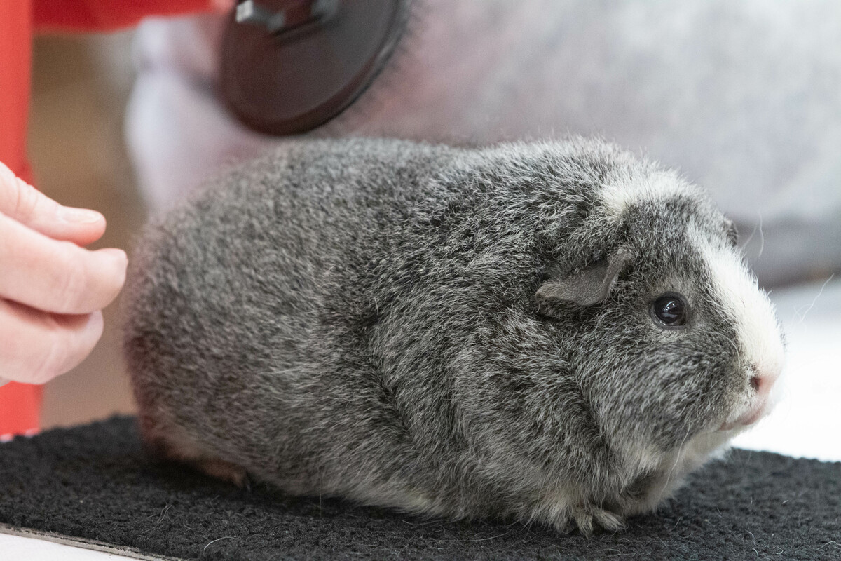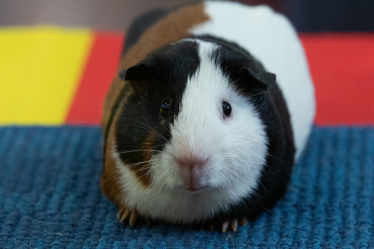 Bi-Colours can come in any two Self or Ticked colours. Brindle cavies have black and red hairs evenly intermixed all over. Himalayans can come in Black or Chocolate and will always have pink eyes. Dalmatian cavies can come in any Self or Ticked colours however in Victoria, Black Dalmatians are the most prevalent. Dutch cavies can come in all Self and Ticked colours, there is a wide variety of Dutch breeds in Victoria. Tri-Colour cavies have three colours on their body, ideally evenly patched in a chequerboard pattern of square cut patches of White and any other Self or Ticked colour. Black, Red and White Tri-Colours are known as Tortoiseshell & White. Roan cavies can come in any Self colour and have evenly mixed white hairs throughout their coat with a solid head and feet. Sable cavies are a sepia brown that fades on the chest and flanks. Harlequin cavies patterned with black and yellow patches and then intermixed. Magpie cavies are similar to Harlequins but with either black and white colouration or chocolate and white.